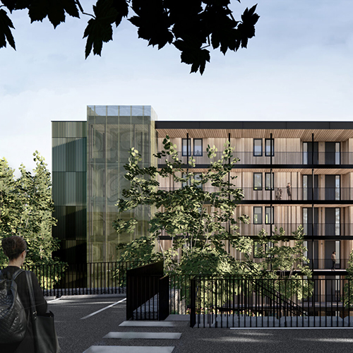 Design-build support for a 70-unit, 5-storey apartment with full mechanical systems and underground parking.
